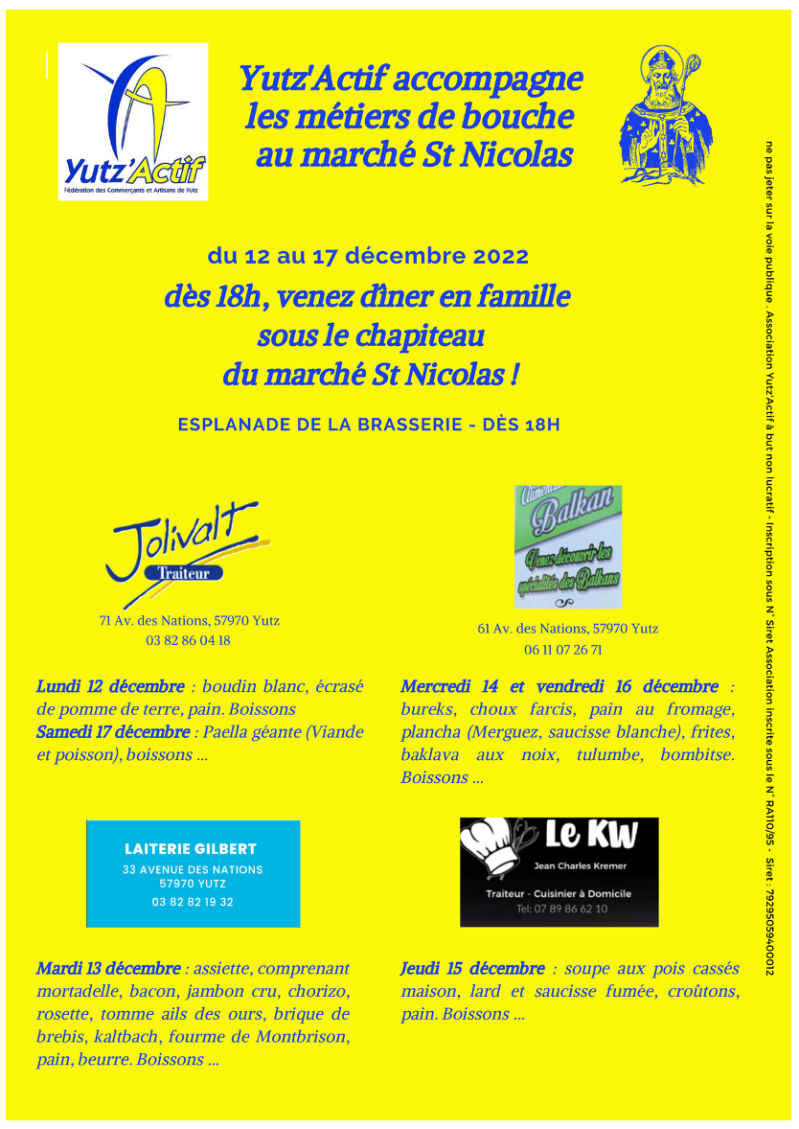 Durant toute une semaine Yutz'Actif a accompagné les commerçants des métiers de bouche au Marché St Nicolas sous le chapiteau, Esplanade de la Brasserie.